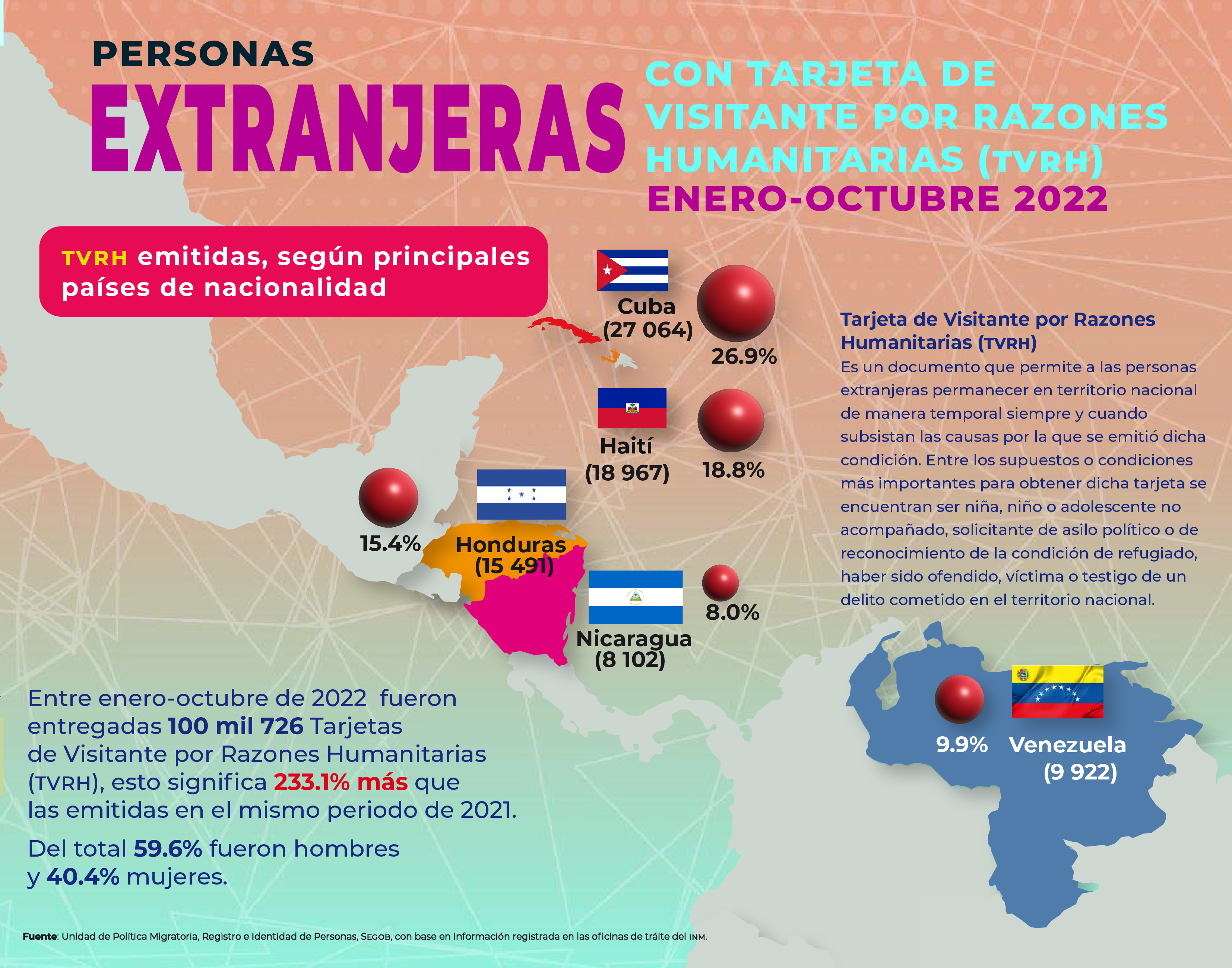 - Extranjeros documentados con tarjeta de visitante por razones humanitarias y visitante regional. Enero 2024