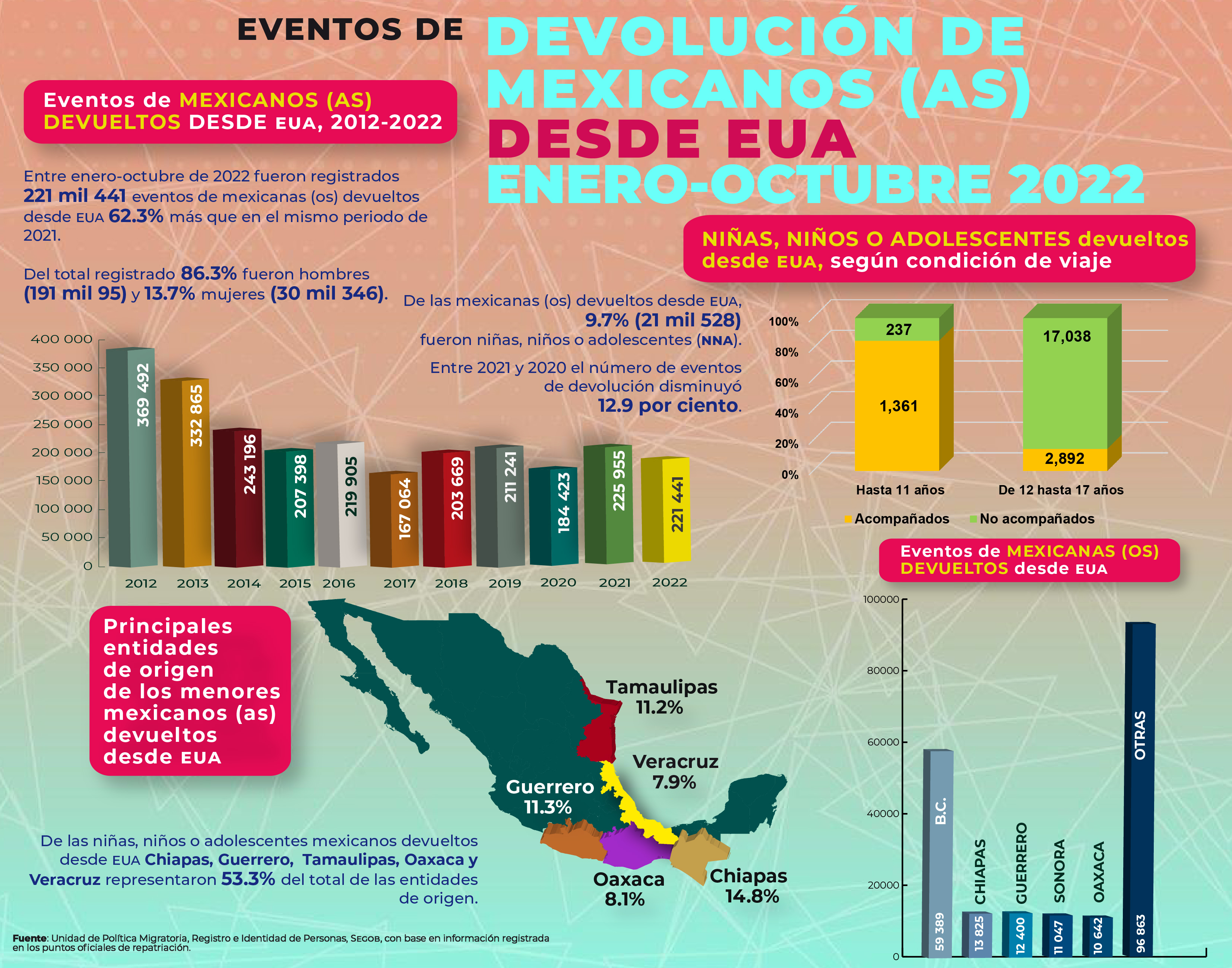 - Eventos de devolución de mexicanas y mexicanos desde Estados Unidos. Enero Octubre 2023