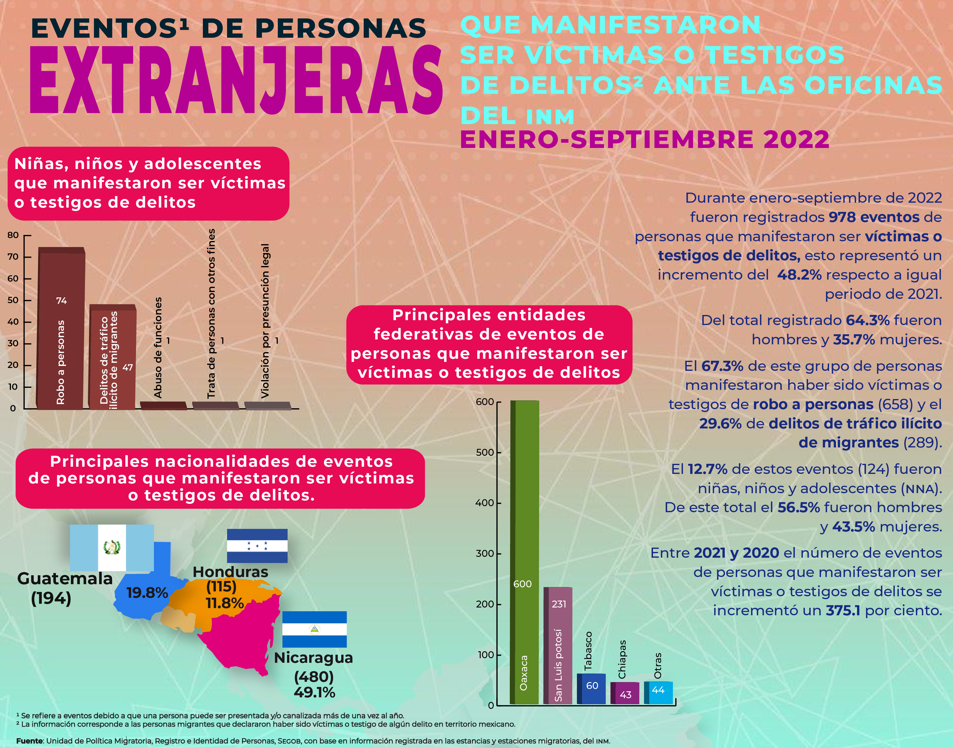 - Eventos de personas extranjeras que manifestaron ser víctimas o testigos de delitos. Enero Octubre 2023