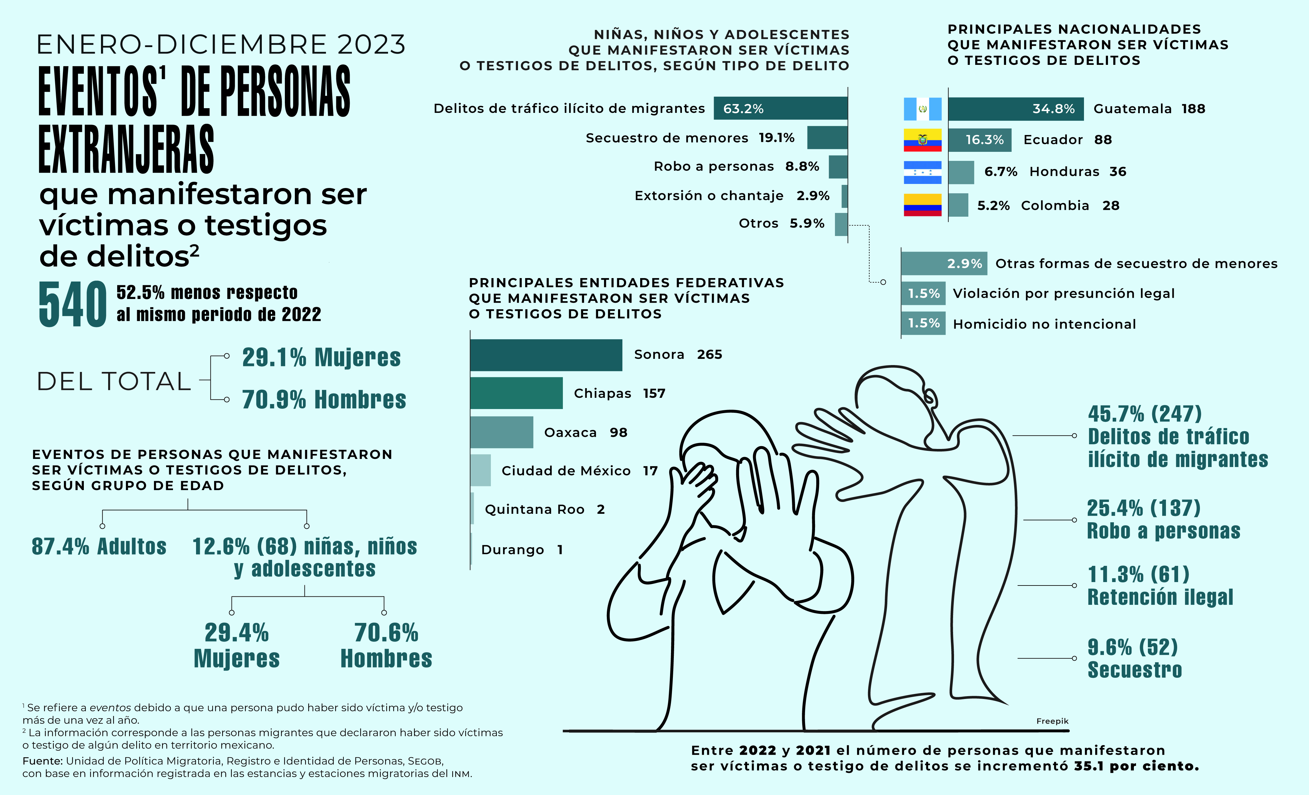 - Eventos de personas extranjeras que manifestaron ser víctimas o testigos de delitos. Enero Diciembre 2023
