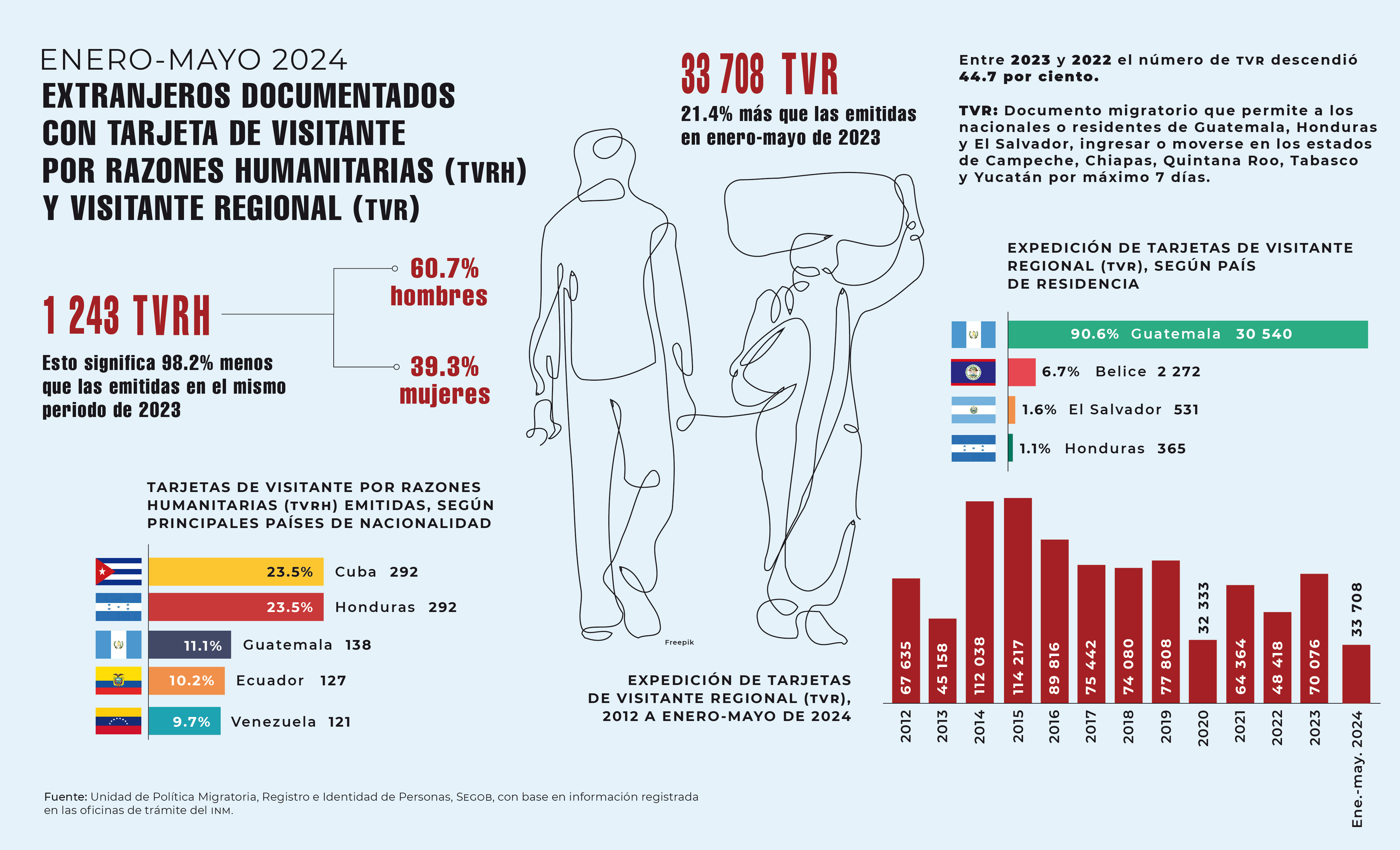 - Extranjeros documentados con tarjeta de visitante por razones humanitarias y visitante regional. Enero Mayo 2024