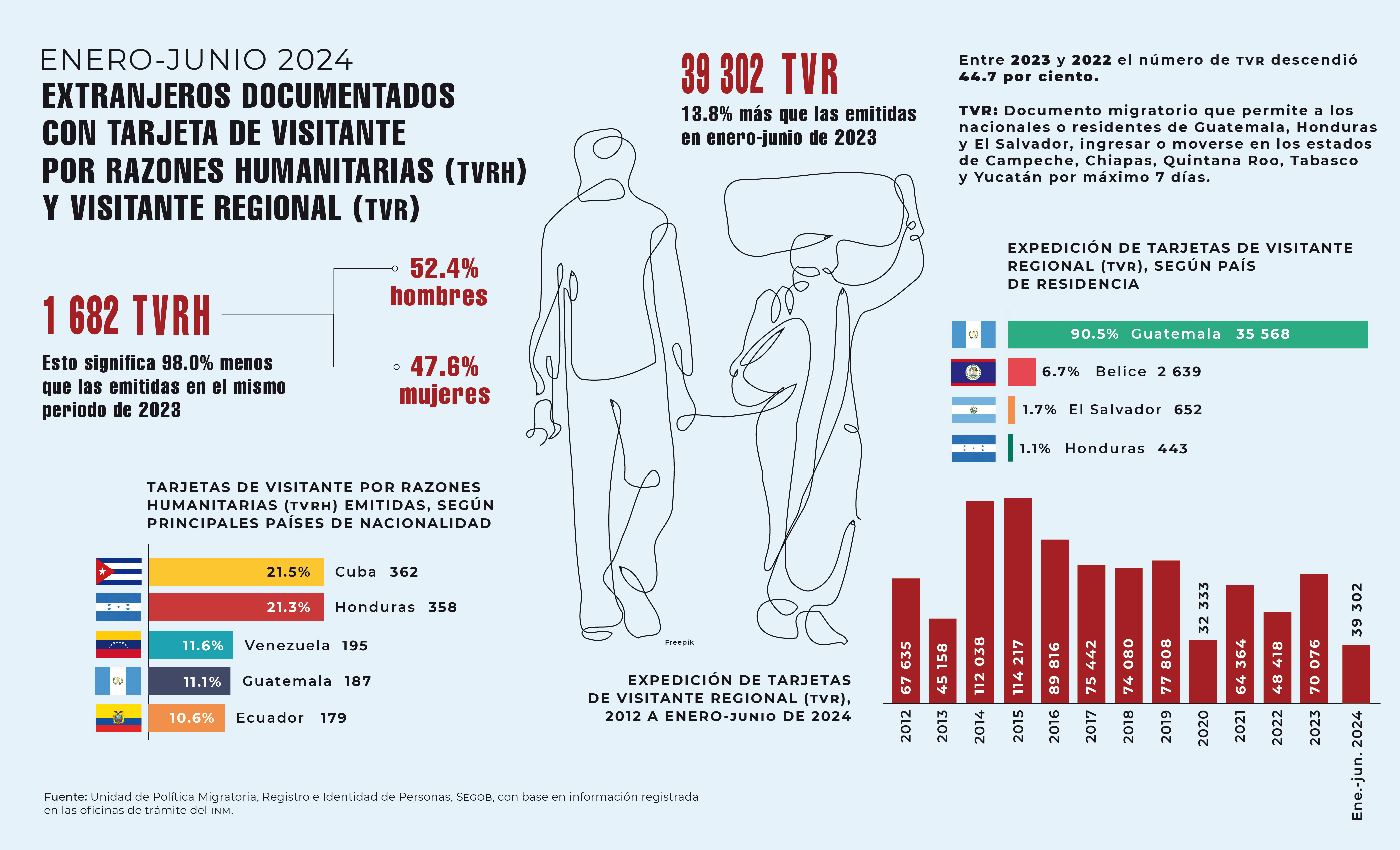 - Extranjeros documentados con tarjeta de visitante por razones humanitarias y visitante regional. Enero Junio 2024