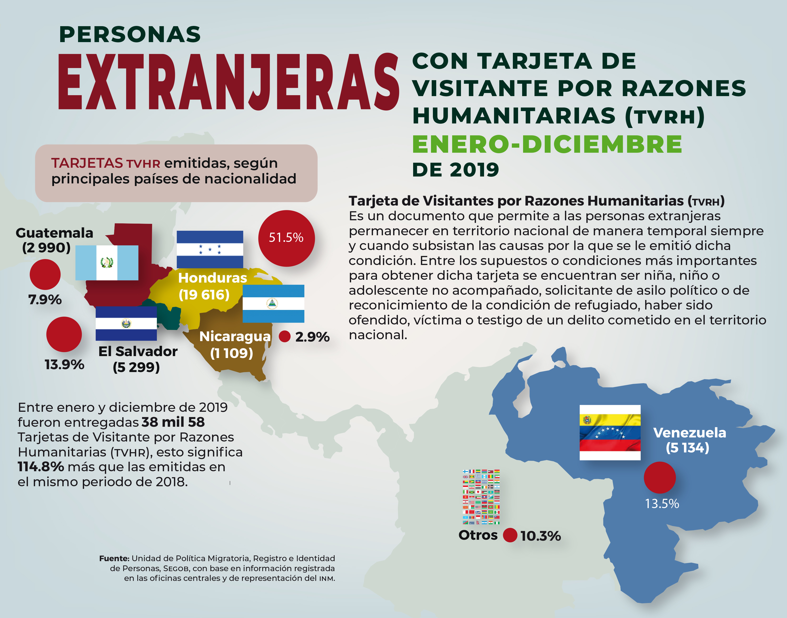 - Personas extranjeras con tarjeta de visitante por razones humanitarias (TVRH), enero – diciembre 2019