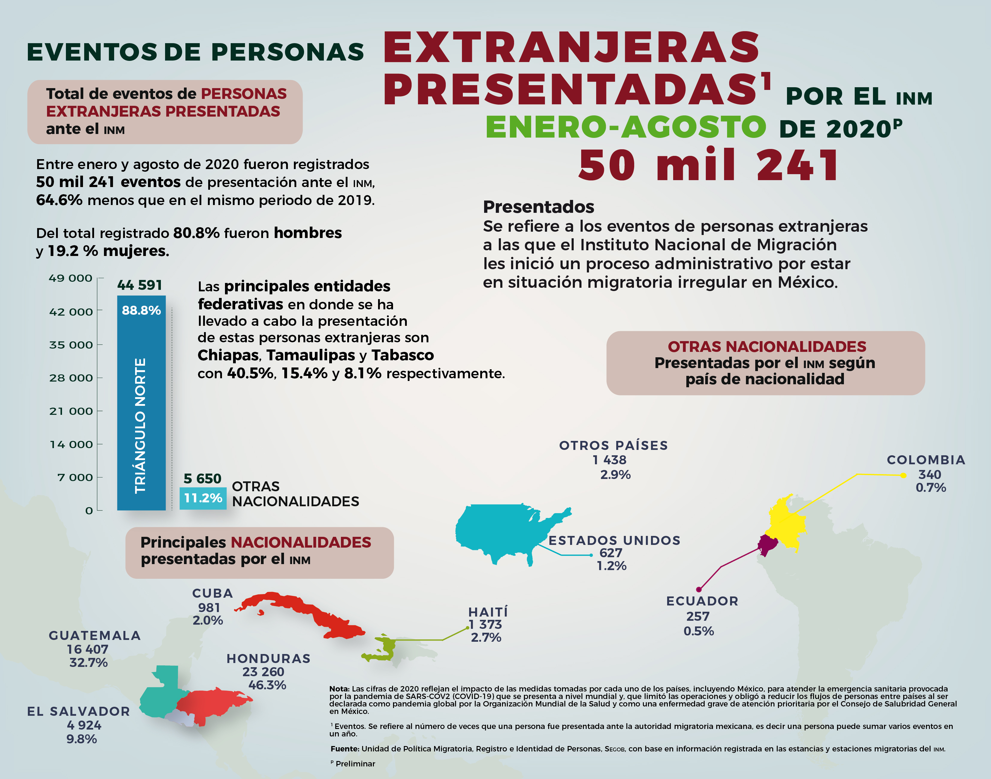 - Eventos de Personas Extranjeras Presentadas por el el INM Enero Agosto de 2020