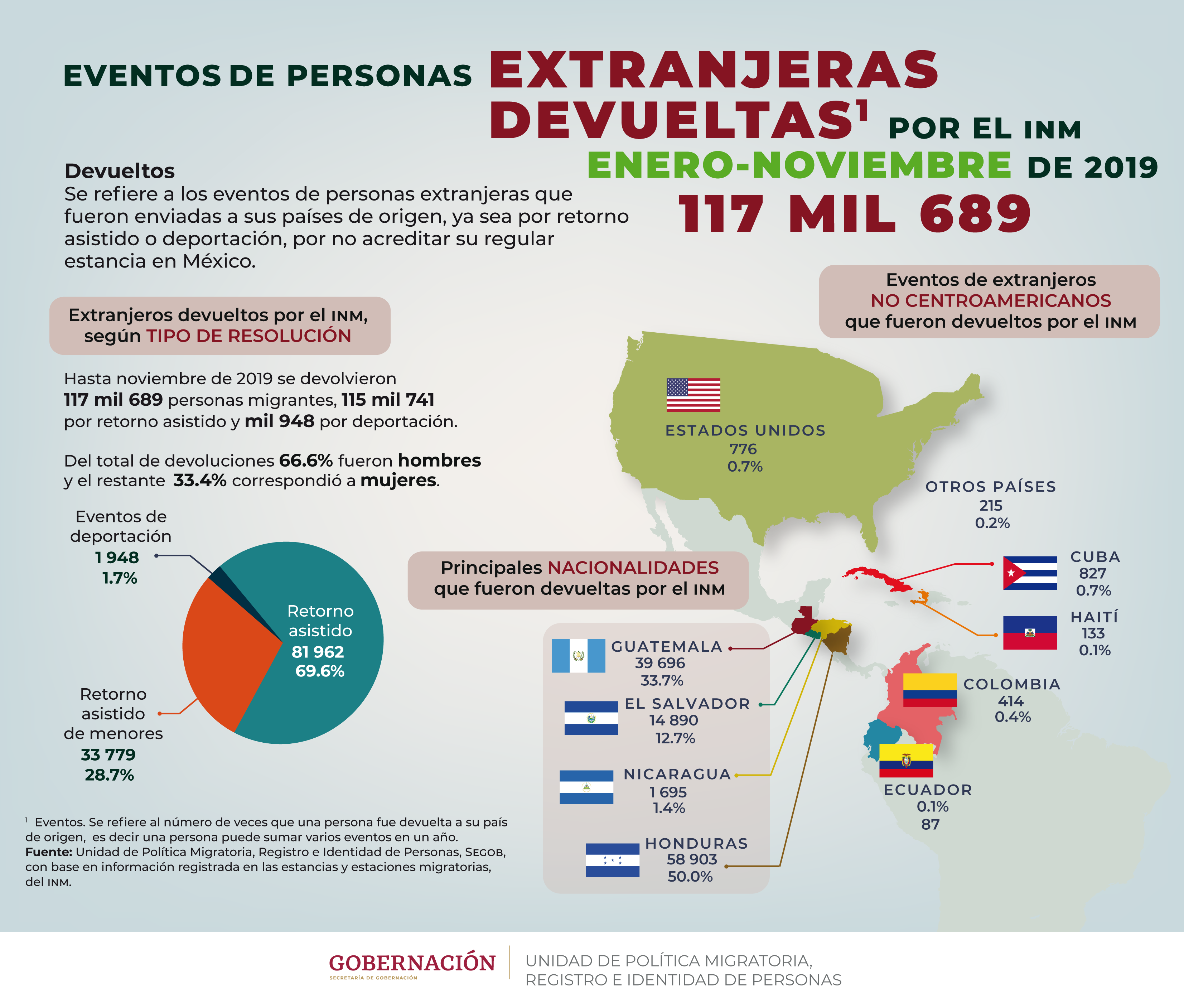 - Eventos de personas extranjeras devueltas por el INM, enero – diciembre 2019
