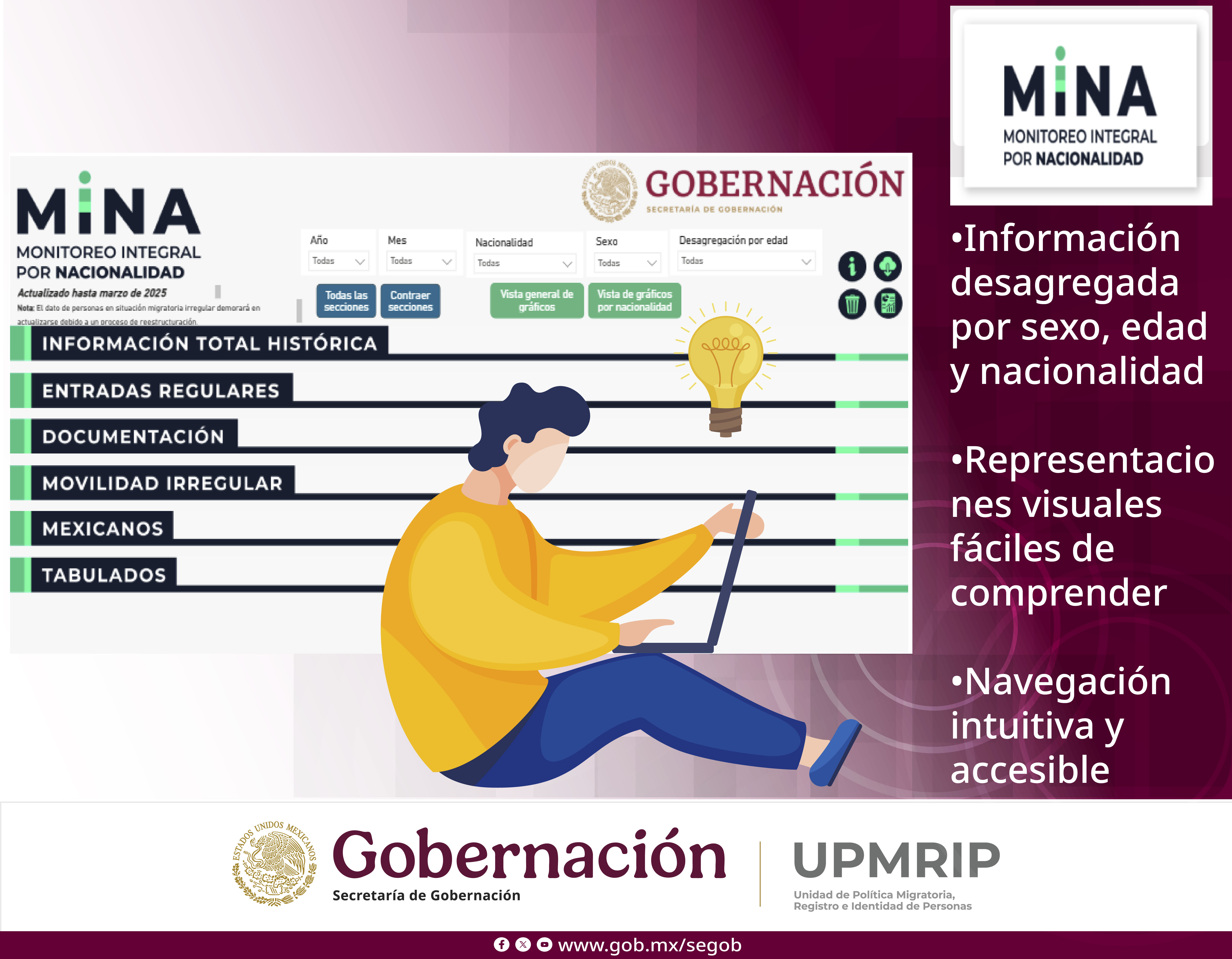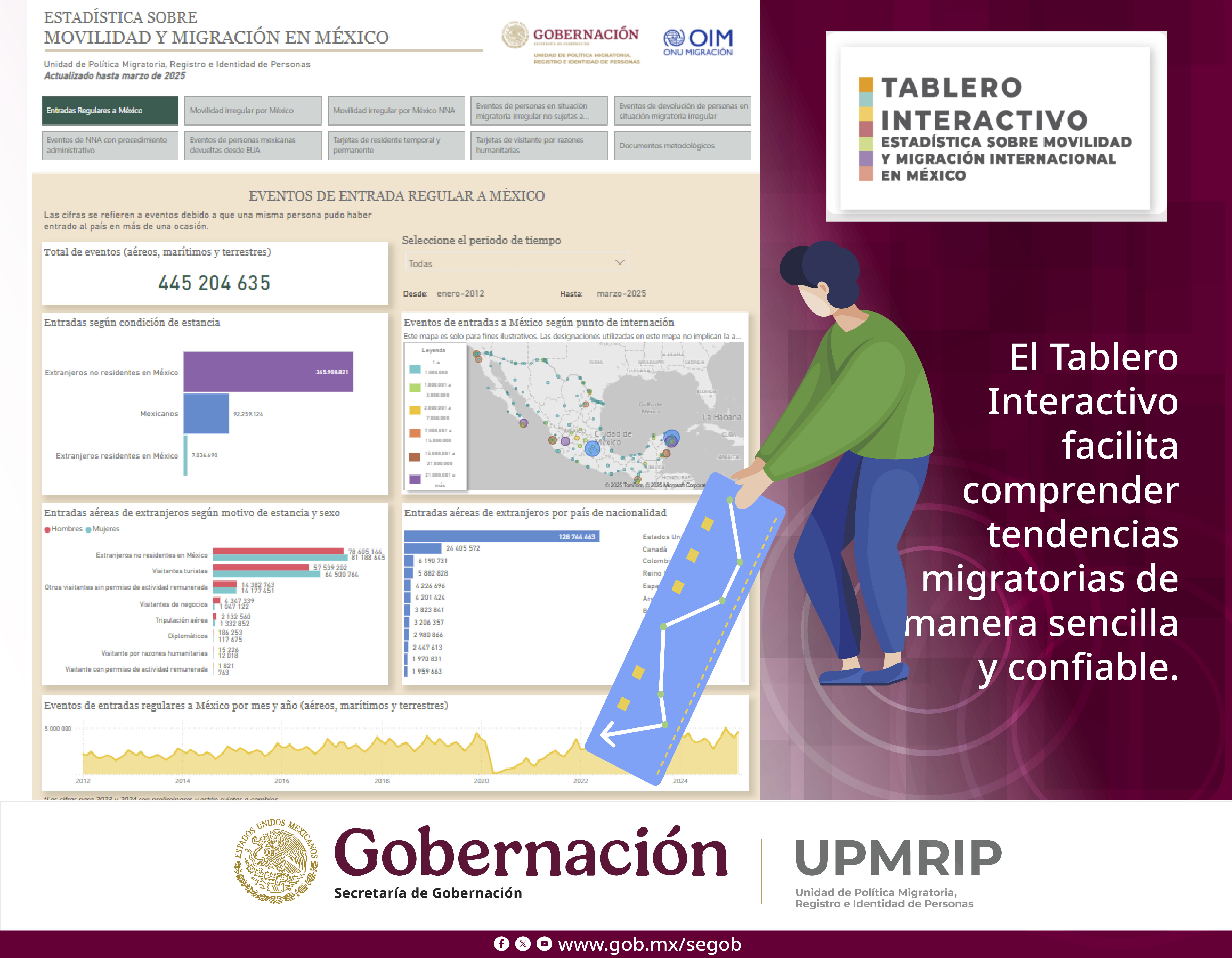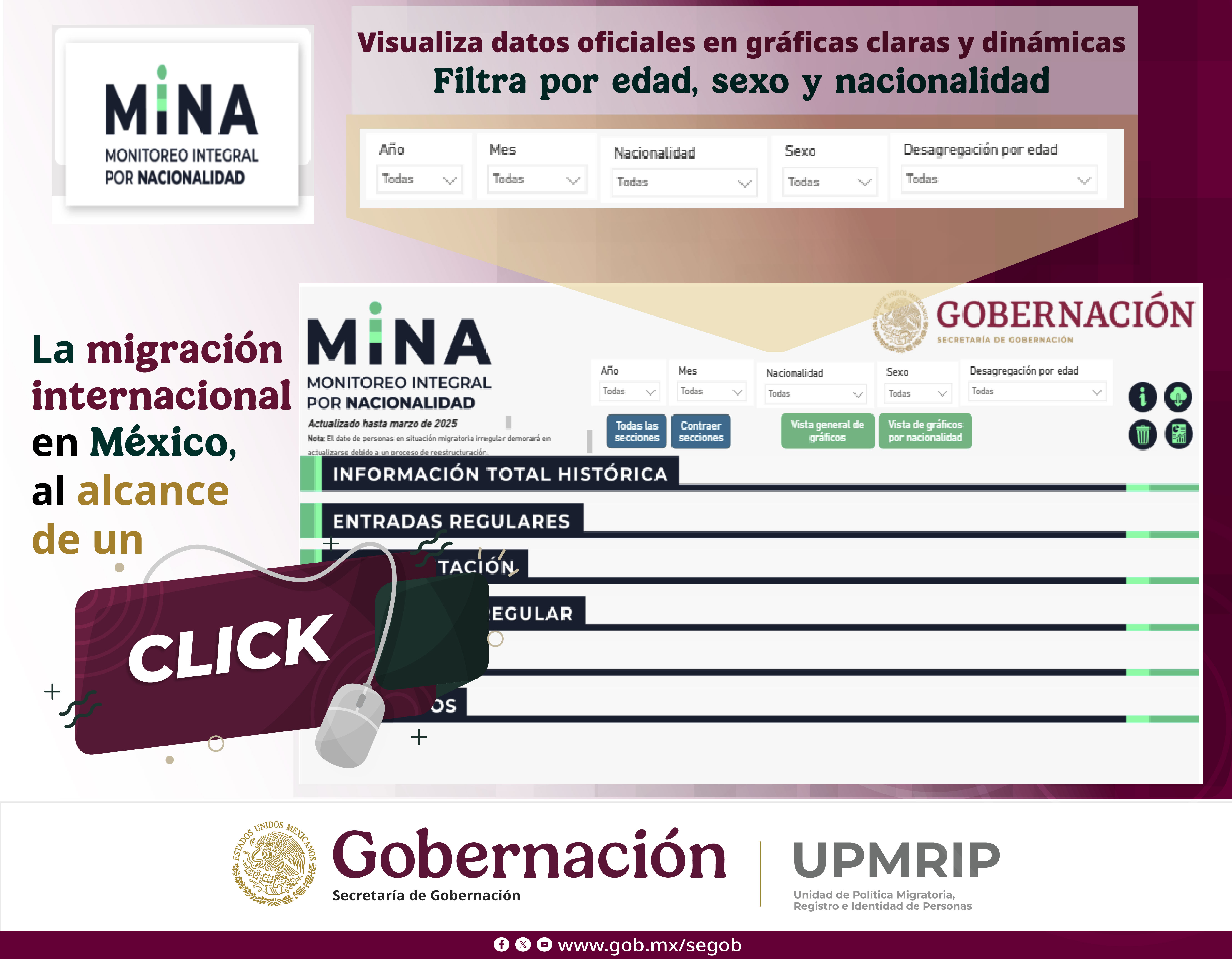 Objetivo: Promover el uso de nuestras plataformas digitales disponibles en la página web institucional como herramientas confiables y actualizadas para la consulta de estadísticas sobre migración y movilidades, facilitando el acceso a información pública para tomadores de decisiones, investigadores, organizaciones civiles y ciudadanía en general..