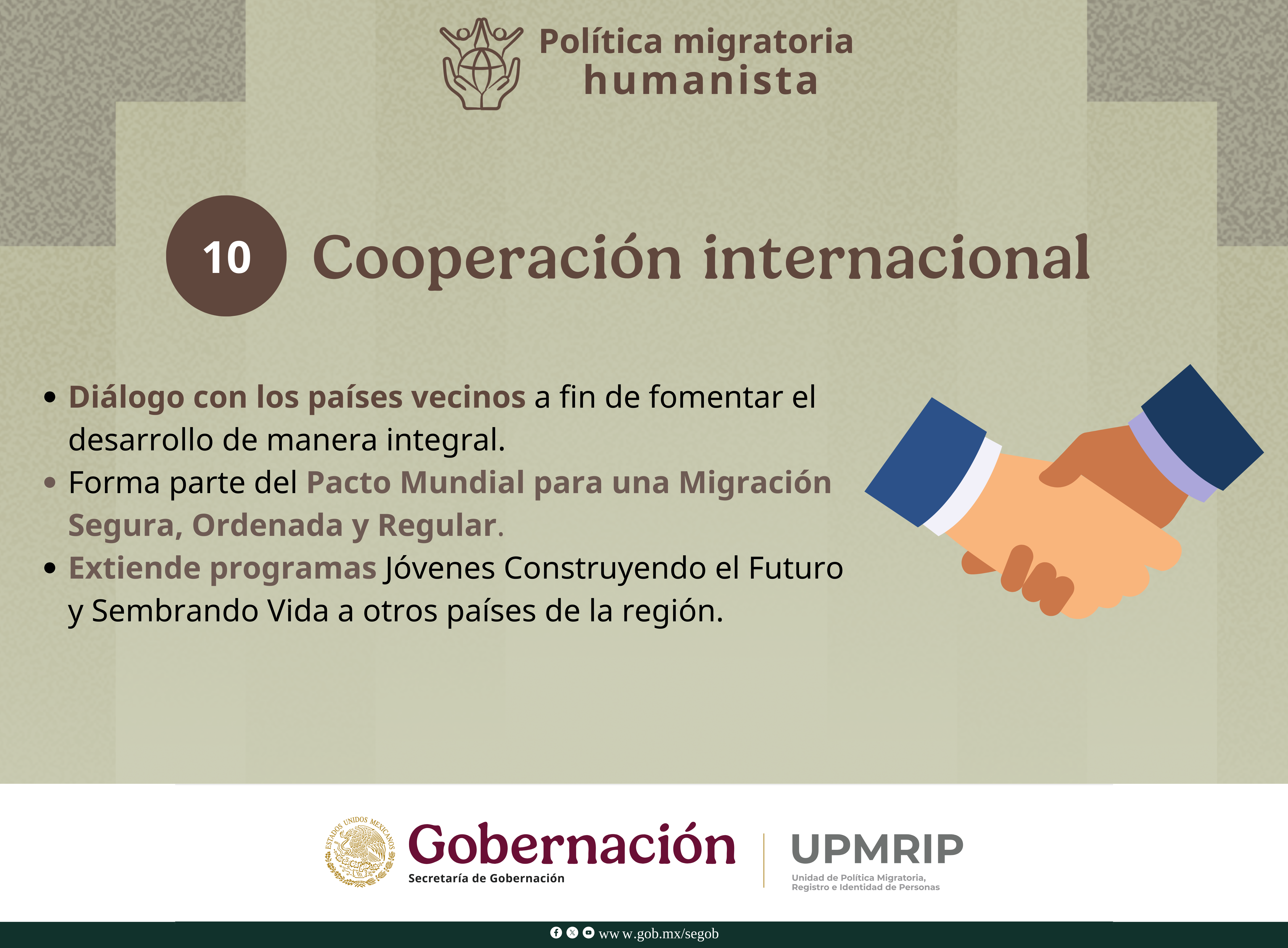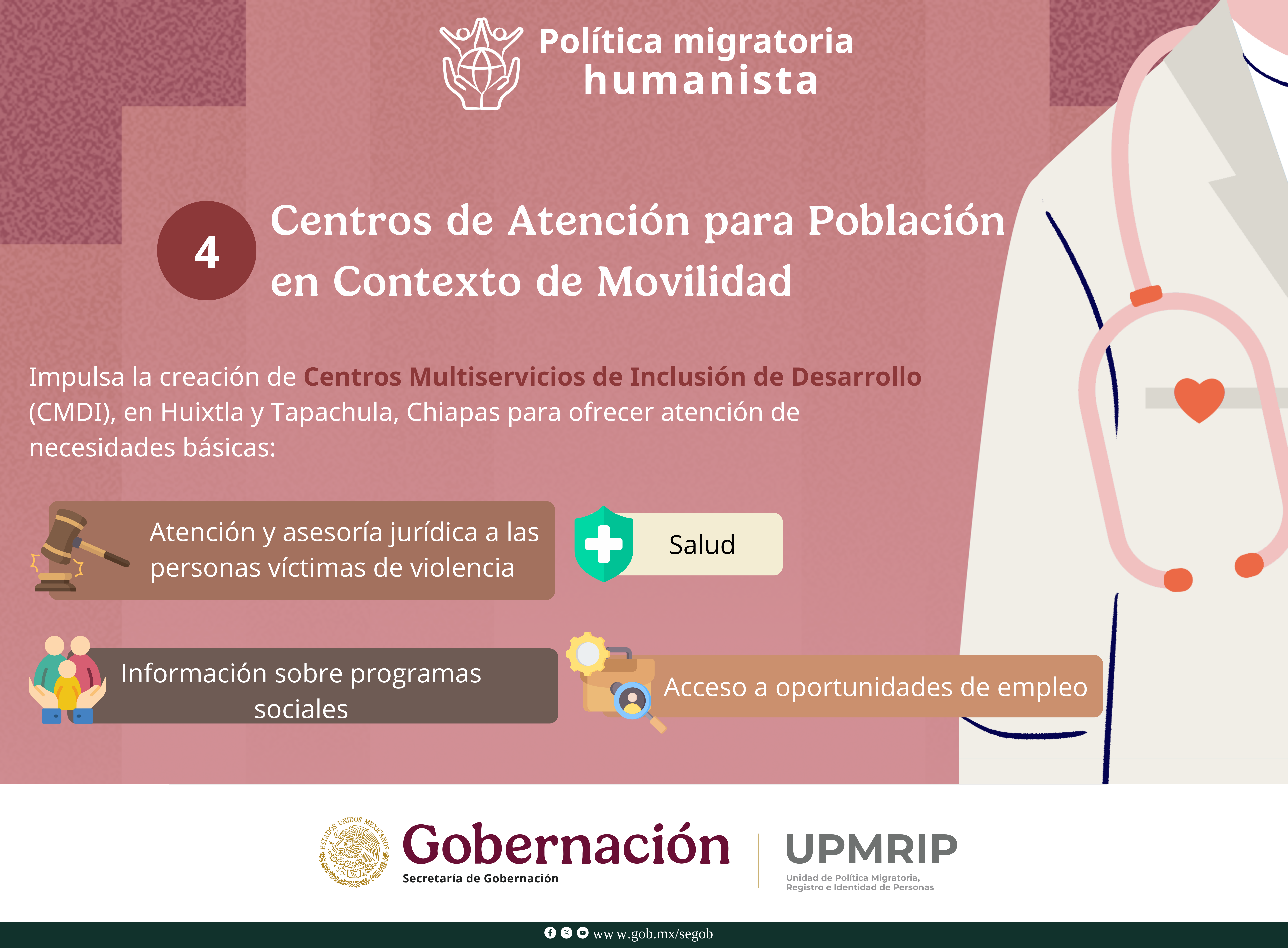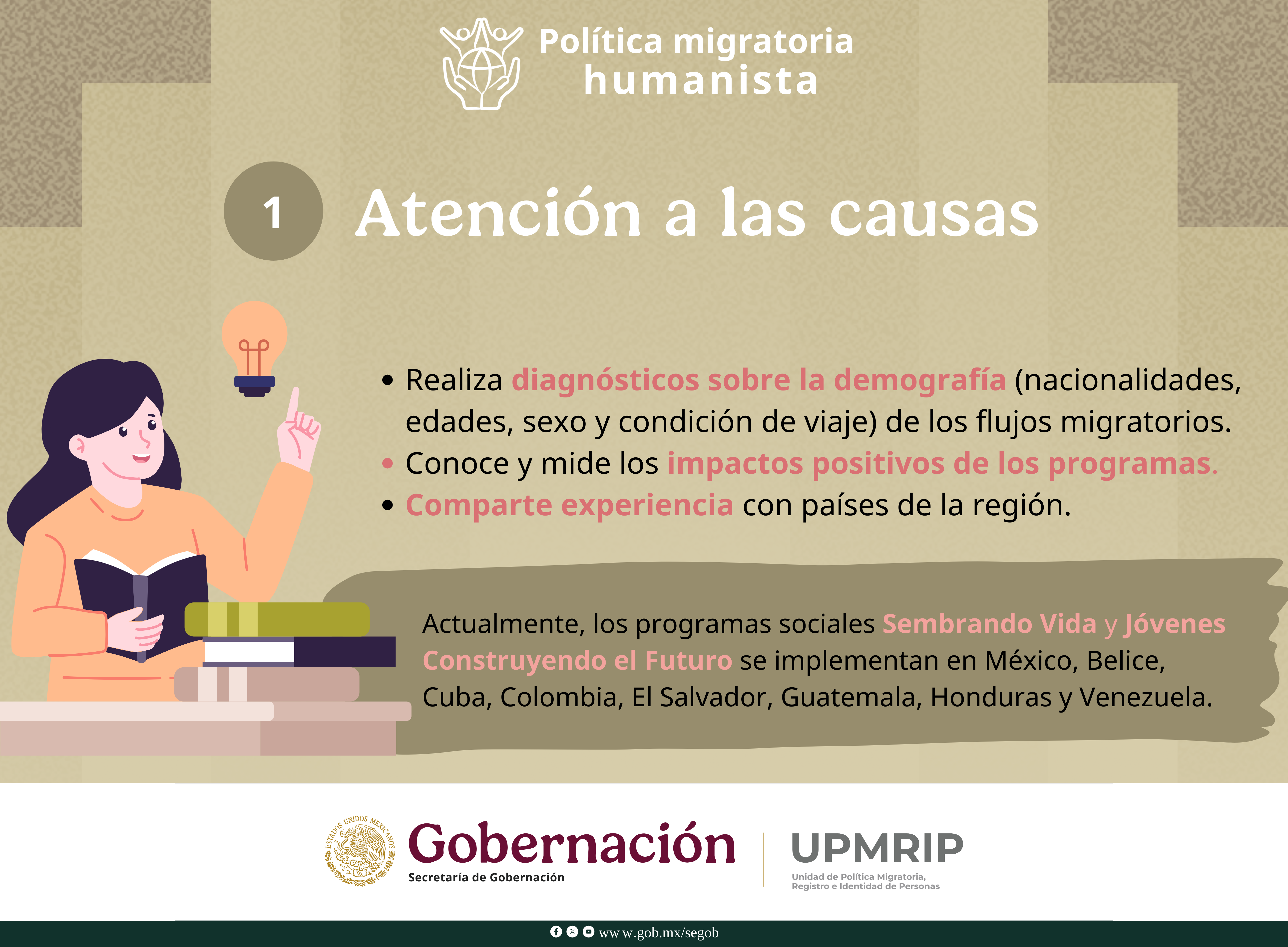 Objetivo: Dar a conocer los programas y acciones de la Política Migratoria Humanista del Gobierno de México, destacando su enfoque en la dignidad, los derechos humanos y la inclusión, para sensibilizar a la sociedad y fortalecer el apoyo a una visión solidaria y respetuosa hacia las personas migrantes.