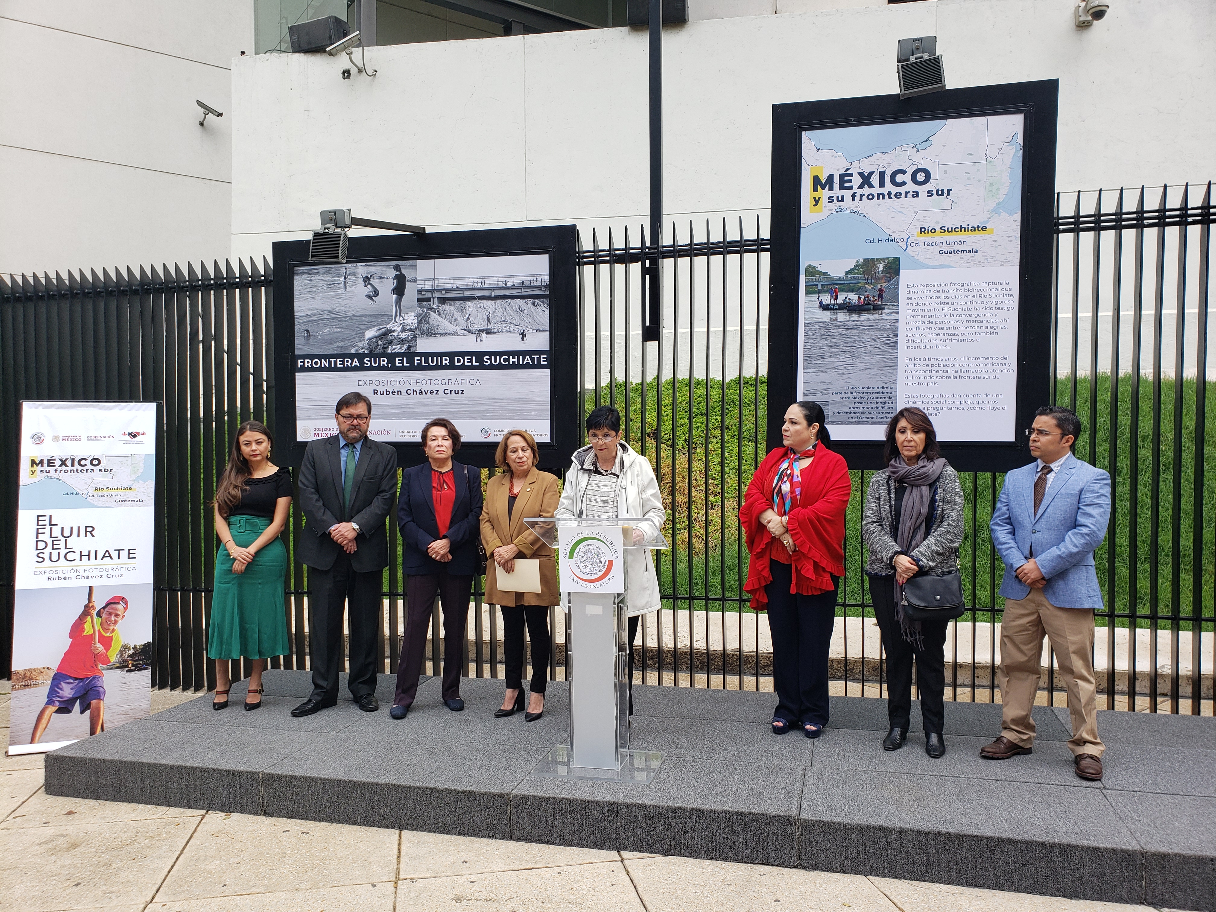 La Jefa de la Unidad de Política Migratoria, Registro e Identidad de Personas, Rocío González Higuera, inauguró, junto con las senadoras Mónica Fernández Balboa, presidenta de la Mesa Directiva del Senado y Bertha Alicia Caraveo, presidenta de la Comisión de Asuntos Fronterizos y Migratorios, la exposición fotográfica Frontera sur. El fluir del Suchiate, el miércoles 11 de septiembre en la galería abierta de Senado.