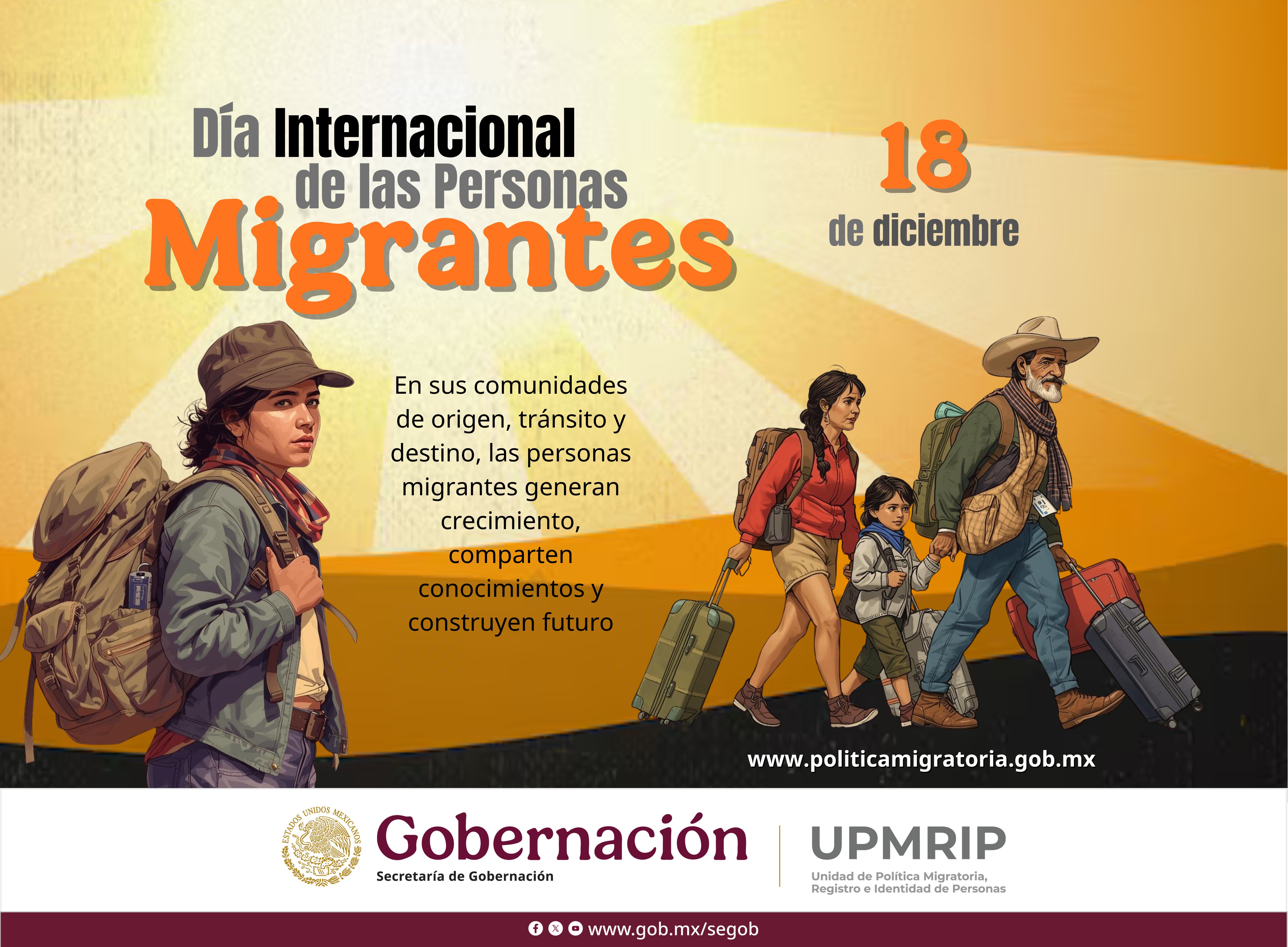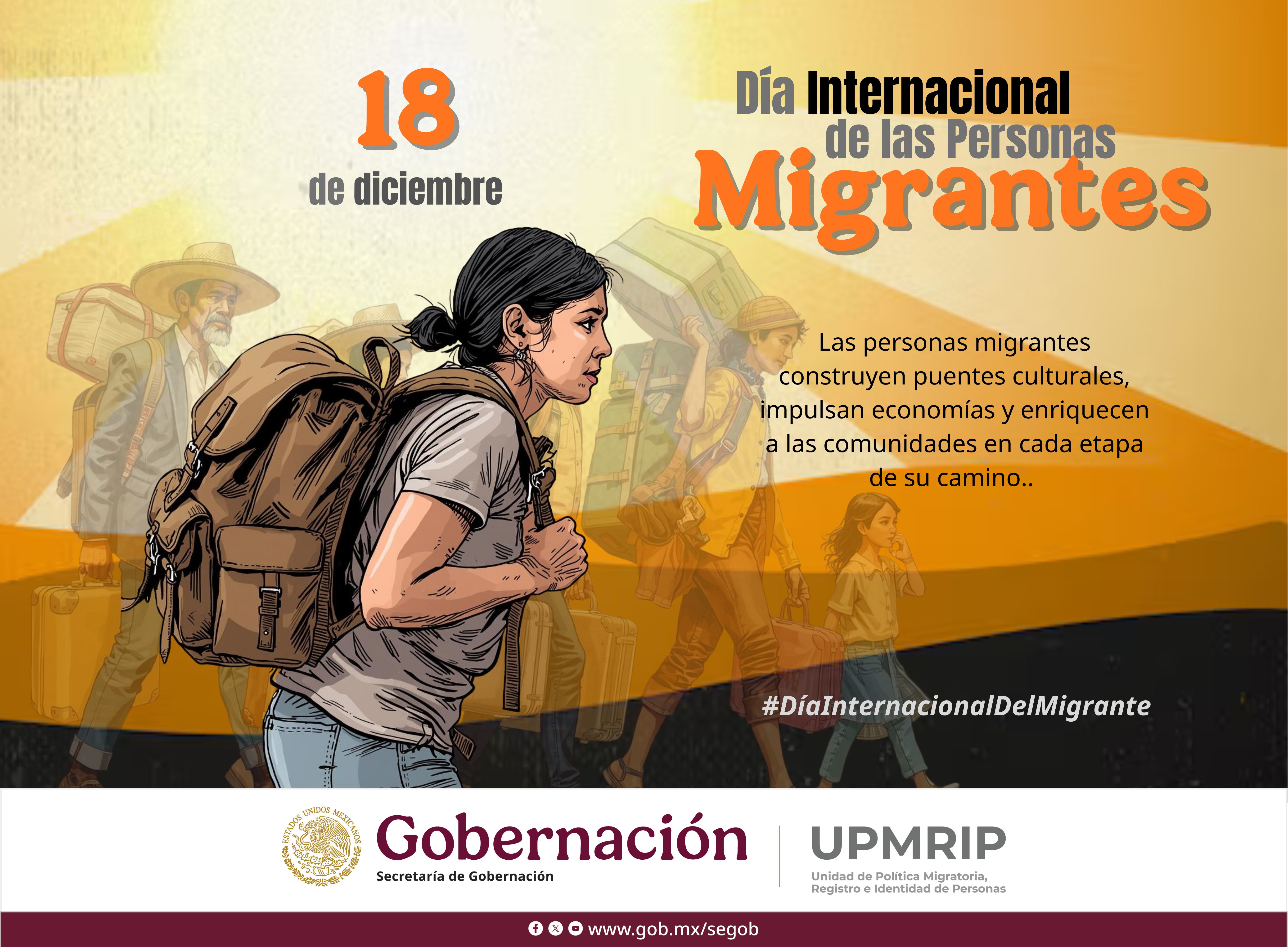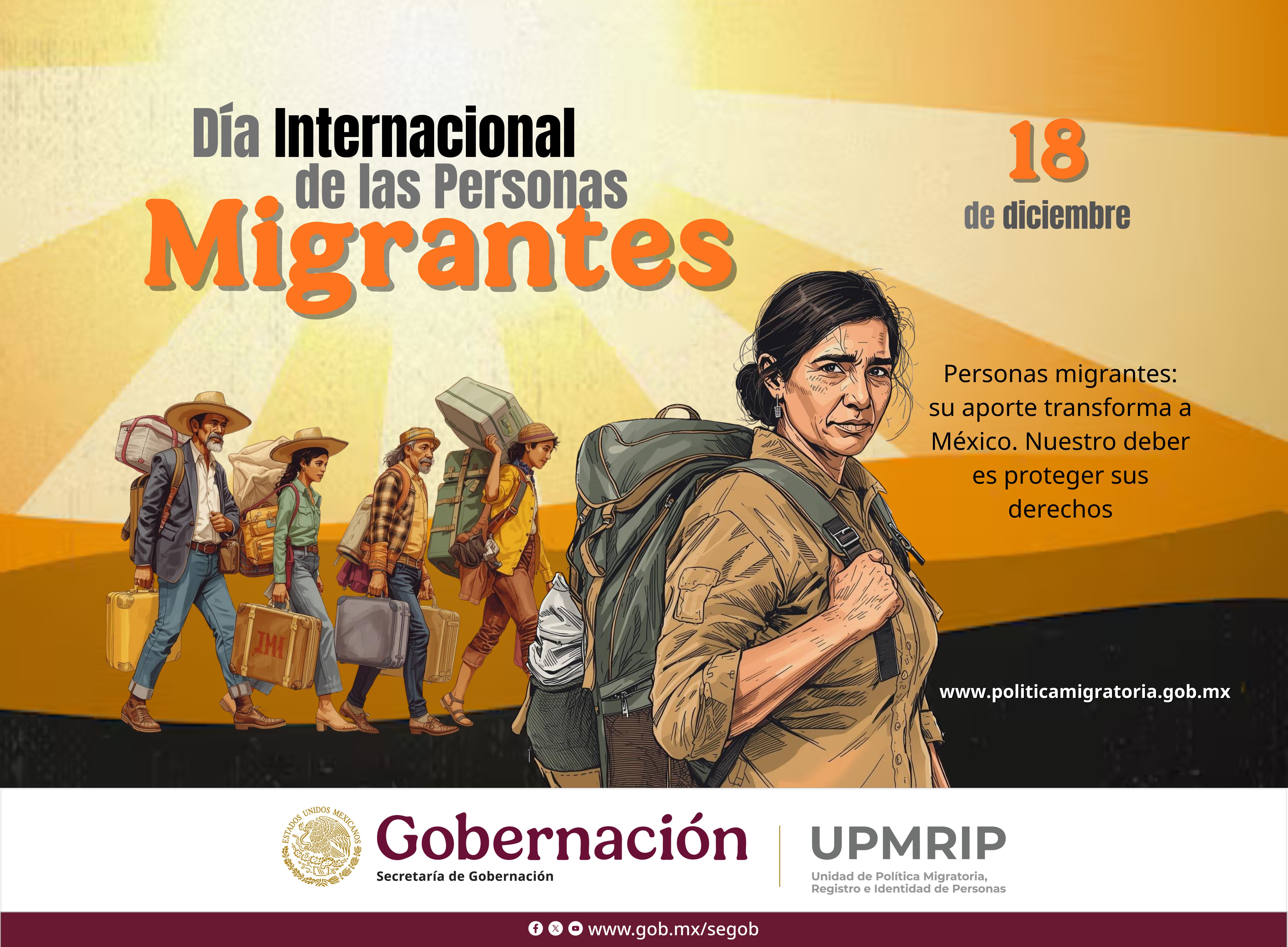 Objetivo: Visibilizar y reconocer las contribuciones sociales, culturales y económicas de las personas migrantes, así como promover el respeto, la protección y la garantía de sus derechos humanos, mediante la difusión de información y mensajes que fomenten una narrativa incluyente, solidaria y con enfoque humanista sobre la movilidad humana, en el marco del Día Internacional de las Personas Migrantes..