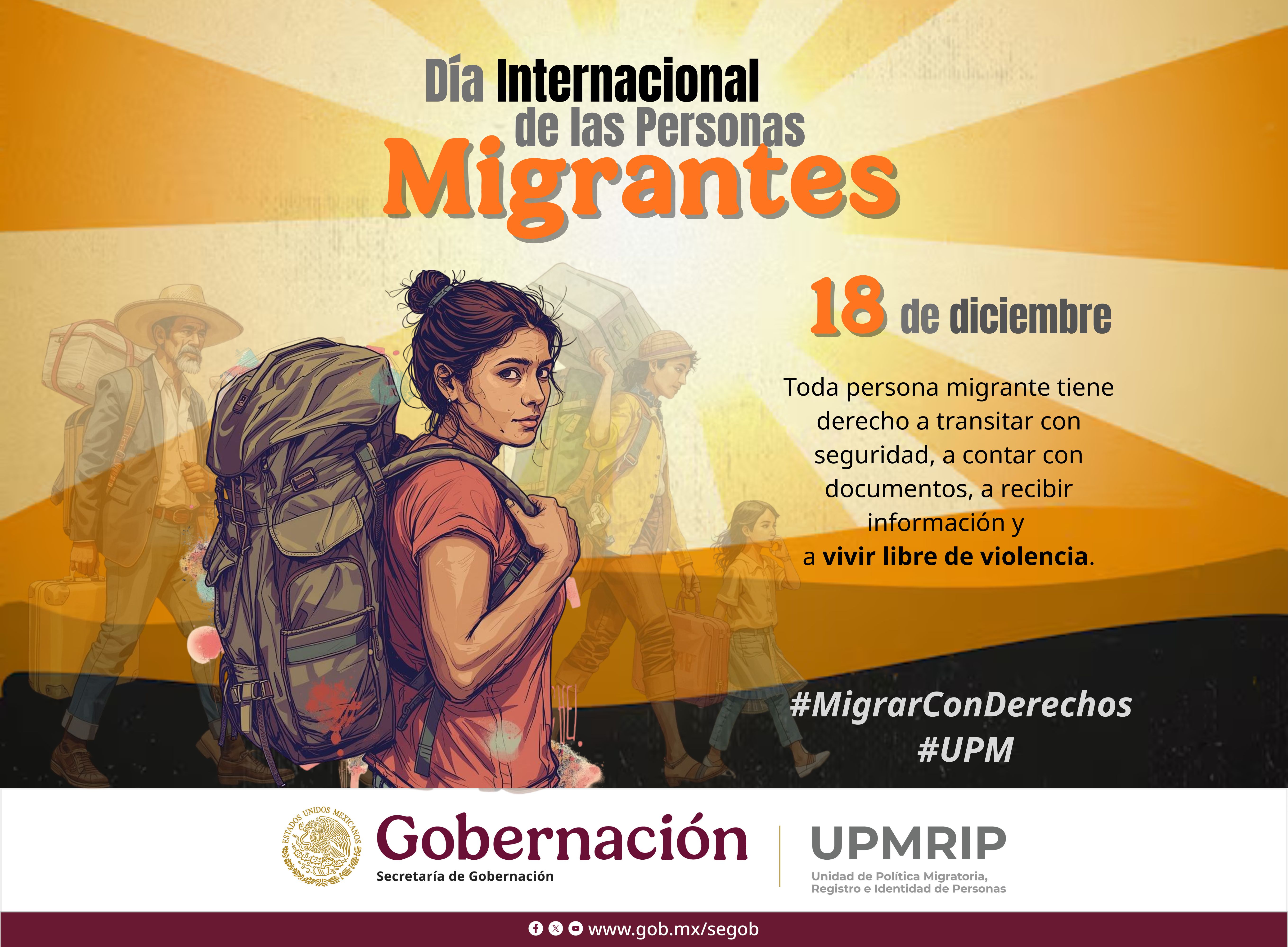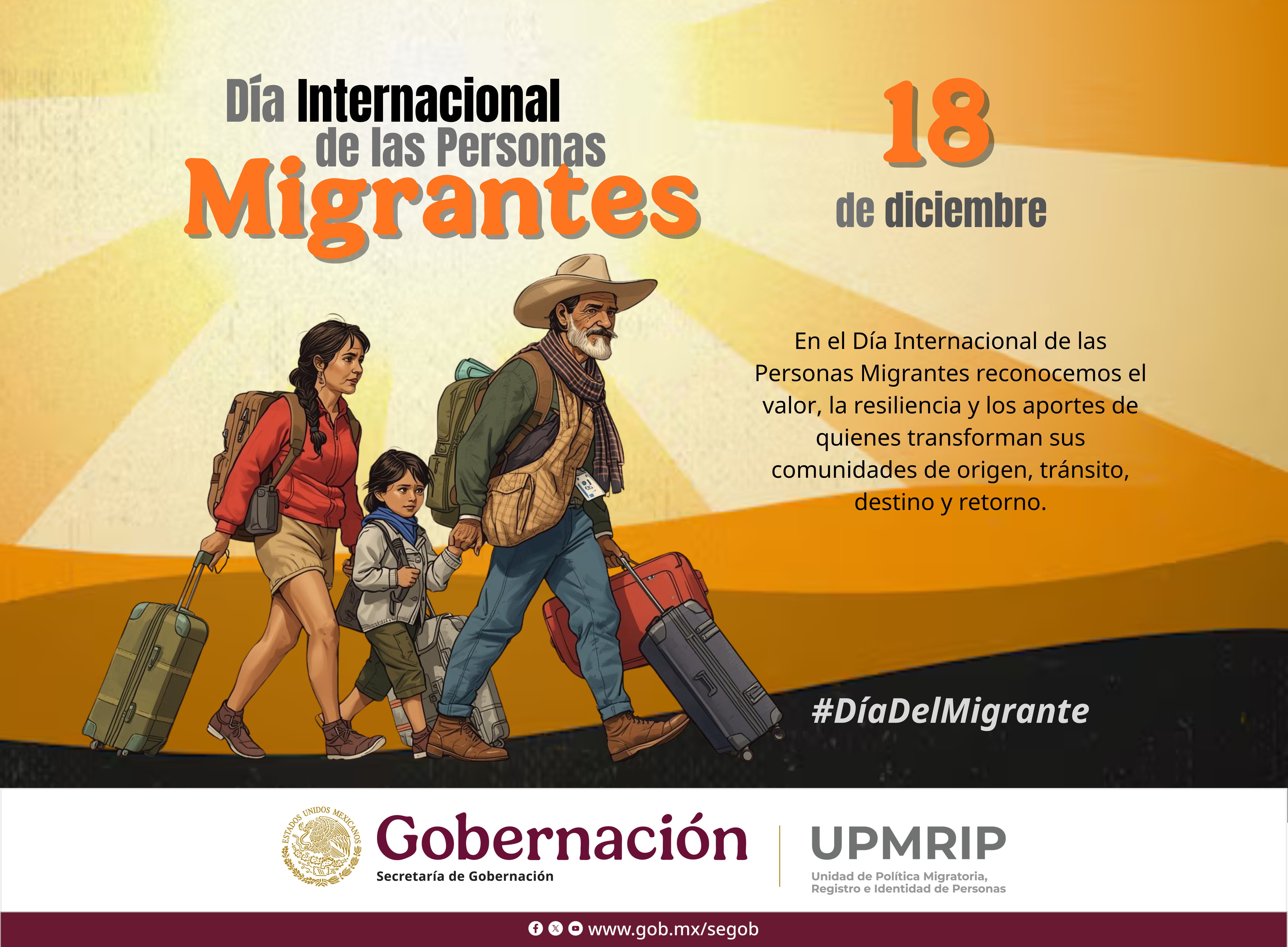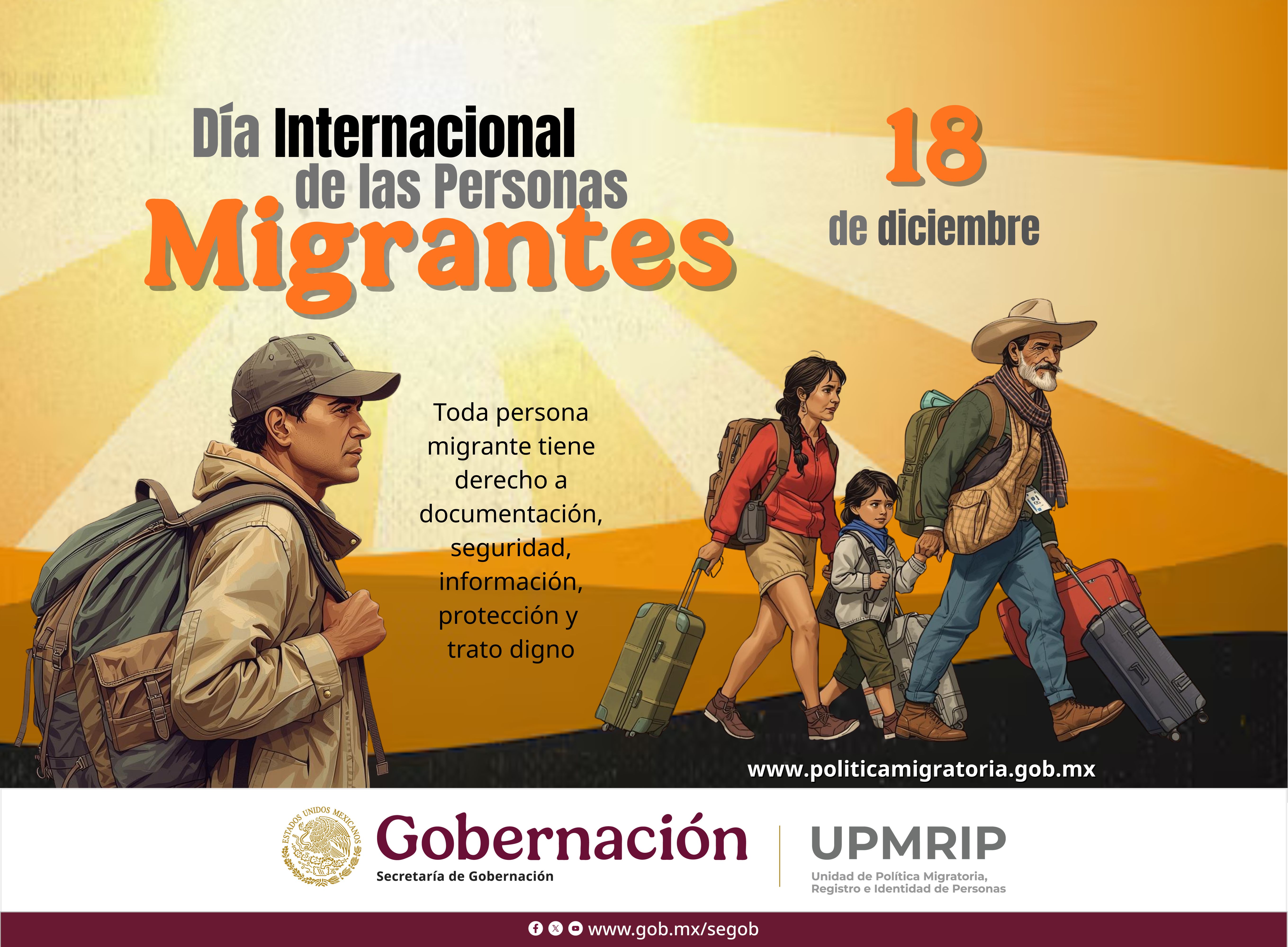 Objetivo: Visibilizar y reconocer las contribuciones sociales, culturales y económicas de las personas migrantes, así como promover el respeto, la protección y la garantía de sus derechos humanos, mediante la difusión de información y mensajes que fomenten una narrativa incluyente, solidaria y con enfoque humanista sobre la movilidad humana, en el marco del Día Internacional de las Personas Migrantes..